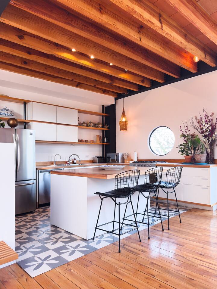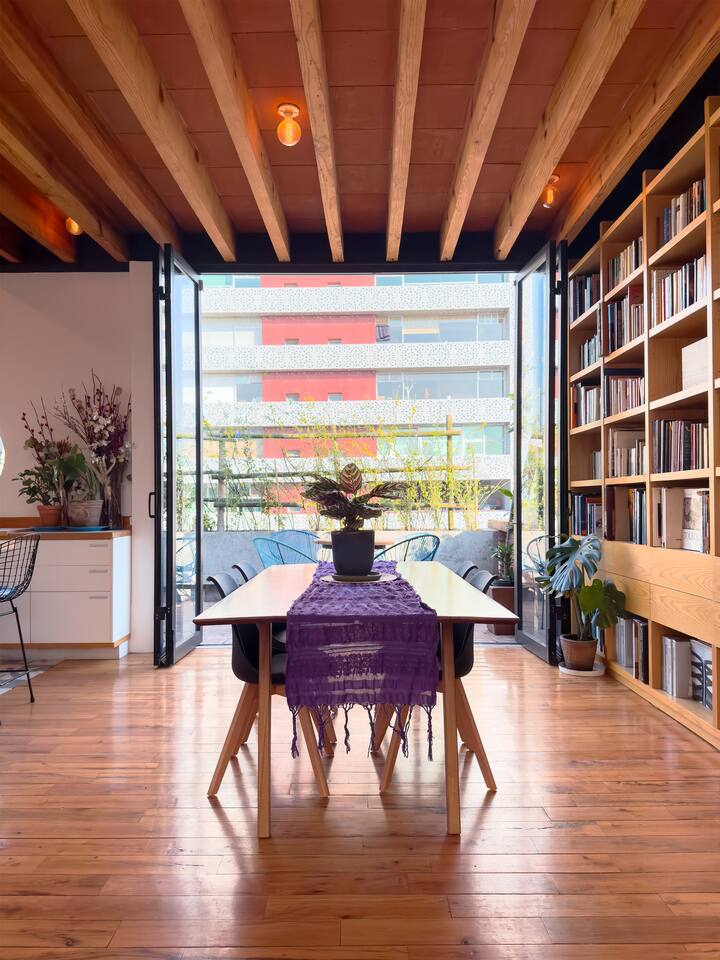The apartment has very high ceilings, and full of sun through most of the day. One of the terraces is surrounded by greenery with a table and a patio chair. From the main bedroom you can watch beautiful sunrises and moonrises. Five people can sleep very comfortably here. Housekeeping or laundry service is available upon request for a 50 dollar fee. I used to manage this apartment as a co-host, but we're currently switching the account to myself as owner. If you'd like to read reviews from previous guests you can do so here: https://airbnb.com/h/cdmxjuarezapartment