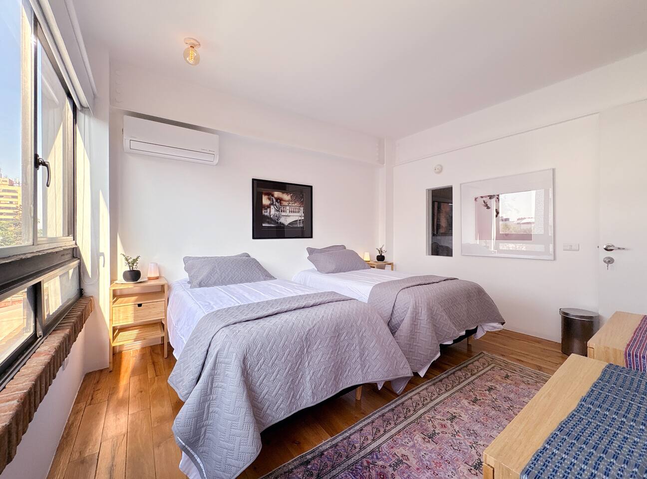 This is a gorgeous apartment with spacious air conditioned bedrooms, a studio workspace, two terraces with beautiful views, hardwood floors and tasteful art decoration. Everything you might be interested in can be found in walking distance: restaurants, bars, art galleries, parks, movie theaters, organic produce markets, yoga studios and hip shops. Suitable both for families as well as for those looking for nightlife. Please keep in mind it's on a fourth floor with no elevator.